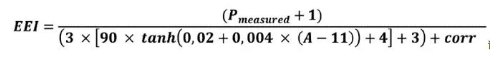 能效指數的計算公式如下:其中Pmeasured是on mode模式下測得的消耗功率(W), A是屏幕面積(dm2), corr是修正因數(不適用于ABC功能加權的OLED電子顯示器是10,其他的是0)