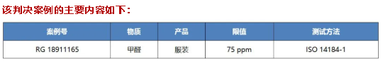 從1988年1月起,甲醛就被歸類為已知的可致癌化學物質列入加州65提案物質清單。近期,加州產生了一例企業因銷售含甲醛的服裝違反了加州65提案而被訴訟的判決案例(案例號:RG18911165)。涉事企業被禁止提供或銷售甲醛含量超過75 ppm的服裝產品,此外還被要求支付217,000美金。