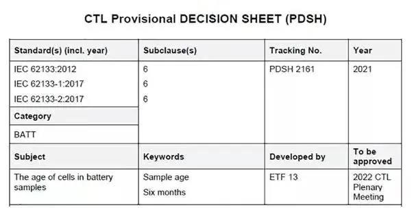 IECEE官網在2021年9月14日公布了關于電池的最新CTL臨時決議,改動內容如下
